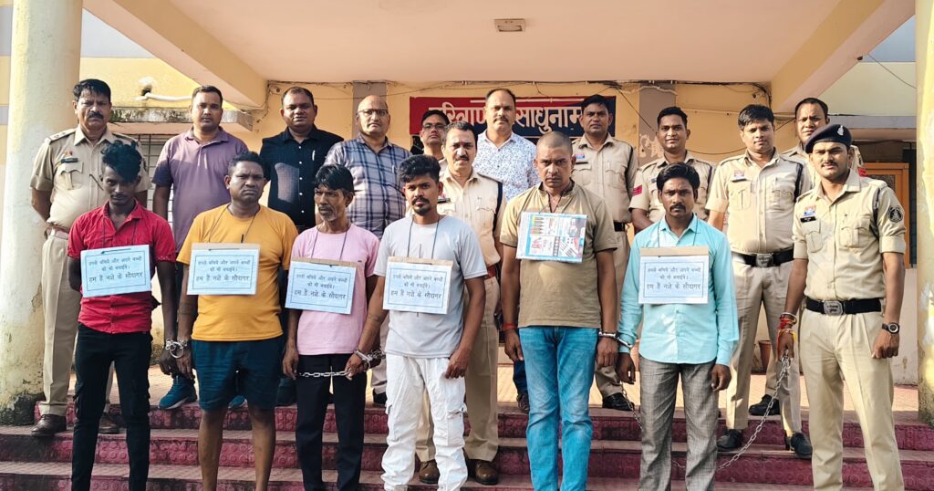 दिनांक 18 अगस्त को मुंगेली पुलिस अधीक्षक भोजराम पटेल के निर्देशन मे थाना सिटी कोतवाली, थाना जरहागांव एवं सायबर सेल के द्वारा संयुक्त रूप से टीम गठित कर जिले मे अवैध रूप से मादक पदार्थ ब्राउन शुगर, गांजा एवं अन्य नशे का तस्करी कर युवा पीढ़ी को नशे का लत लगाने वाले ऐसे तस्करों तथा ब्रिकी करने वाले लोगो की सूची तैयार कर थाना मुंगेली क्षेत्रान्तर्गत 1. जाकिर खान पिता जब्बार खान निवासी दाउपारा चौक मुंगेली 2. सोनू डांडे उर्फ छोटे सोनू पिता स्व. किशोर मेहर डाण्डे उम्र 32 वर्ष निवासी वार्ड 17 केशवपुर मुंगेली 3. अनिल कुमार खरसायन उर्फ बड़े सोनू पिता जनक राम मेहर उम्र 38 वर्ष निवासी वार्ड 17 केशवपुर मुंगेली 4. विष्णु वैष्णव उर्फ शिव बाबा पिता बृजभूषण वैष्णव उम्र 58 वर्ष निवासी खर्रीपारा मुंगेली व थाना जरहागांव क्षेत्रान्तर्गत 6. किशोर ध्रुव पिता स्व.राजेन्द्र प्रसाद उम्र 35 वर्ष निवासी झझपुरी खुर्द जरहागांव 7. अमित साहू पिता बाबुराम उम्र 38 वर्ष निवासी झझपुरी खुर्द जरहागांव को हिरासत मे लेकर पुछताछ किया गया जो पृथक-पृथक नशा ब्राउन शुगर, नाइट्रा, गांजा, सिगरेट, बीड़ी, शराब का सेवन तथा बाहर राज्यों से ब्राउन शुगर को लाकर युवाओं को बेचते है तथा नशा कराते है जिस पर उक्त जाकिर खान, सोनू डांडे, अनिल खरसायन, विष्णु वैण्णव, किशोर धु्रव, अमित साहू की गिरफ्तारी कर शहर मे रैली जुलुस निकालकर तस्करों तथा ब्रिकी करने वालों को ‘‘हम है नशा के सौदागर, हमसे बचिये और अपने बच्चों को भी बचाईये’’ का नारा लगवाते हुये पुरे शहर मे पैदल घुमाया गया और युवा पीढ़ियो को जागरूक किया गया और प्रतिबंधात्मक कार्यवाही के तहत जेल दाखिल किया गया।
