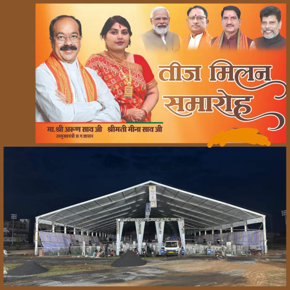 डिप्टी सीएम साव का लोरमी में तीज महोत्सव कार्यक्रम का भव्य पंडाल तैयार