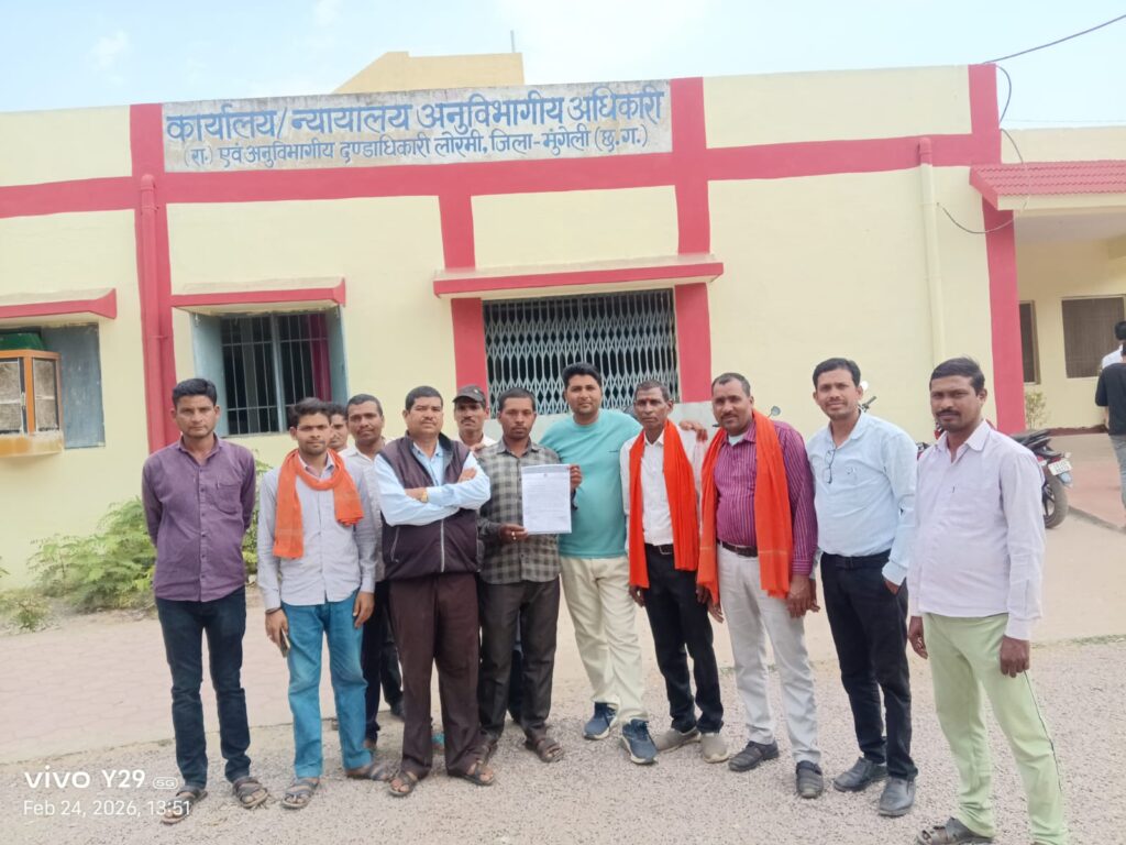 राजस्व अधिकारी से निवेदन है, कि अवैध रेत उत्खनन बंद कराने मांग किये है। ज्ञापन सौंपने वालों में सरपंच महंतिन बाई, छेदीलाल जायसवाल, नरेश कुमार, वीरेंद्र कुमार, गोकुल, दिनेश, राजू पटेल, नरेंद्र, पालेश्वर, विजय कुमार, अशोक पटेल जलेश्वर प्रसाद, राज्यपाल सिंह विजयलक्ष्मी परमेश्वर एवं अन्य शामिल है।