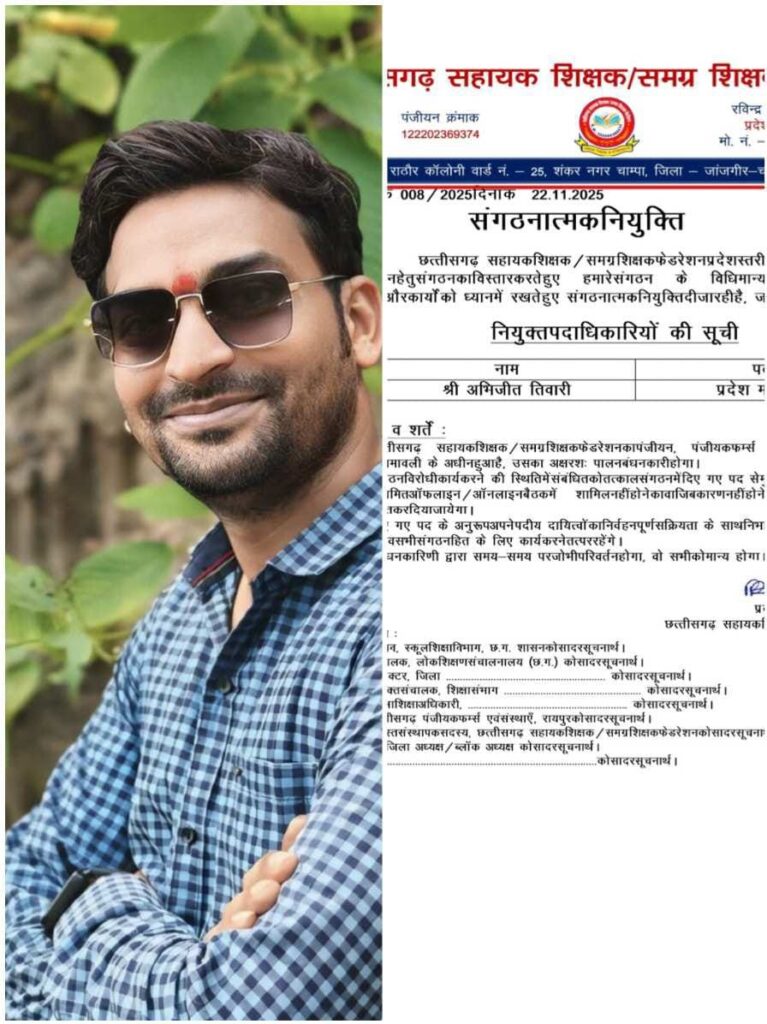 - छत्तीसगढ़ सहायक शिक्षक समग्र शिक्षक फेडरेशन की नई टीम घोषित: लोरमी के अभिजीत तिवारी प्रदेश महामंत्री नियुक्त - November 29, 2025