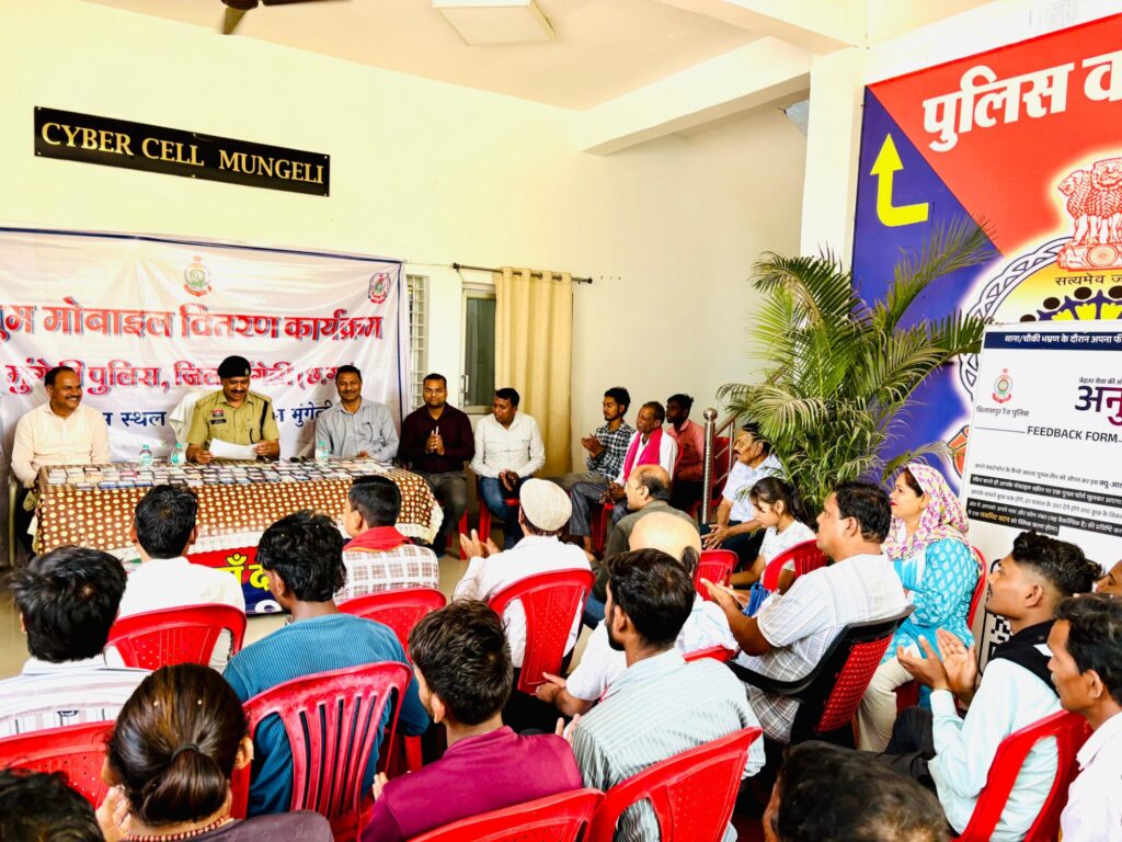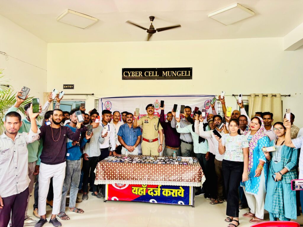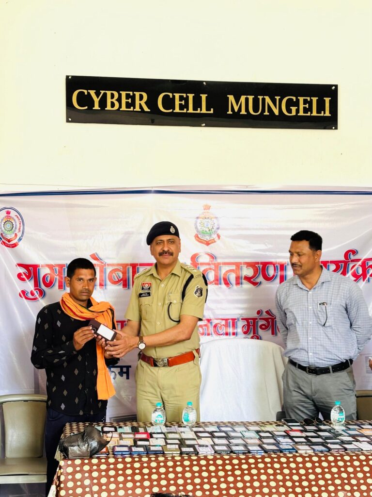 आज दिनांक 23 अप्रैल 2026 को साइबर सेल में आयोजित एक गरिमामय कार्यक्रम के दौरान, उप पुलिस अधीक्षक हरविन्दर सिंह के द्वारा मोबाइल धारकों को उनके फोन सुपुर्द किए। अपना खोया हुआ मोबाइल वापस पाकर आवेदकों/मोबाइलथारकों के चेहरे खिल उठे। कई नागरिकों ने बताया कि उन्हें उम्मीद नहीं थी कि उनका फोन वापस मिलेगा, उन्होंने मुंगेली पुलिस की कार्यप्रणाली की सराहना करते हुए एसएसपी भोजराम पटेल का हृदय से आभार व्यक्त किया।