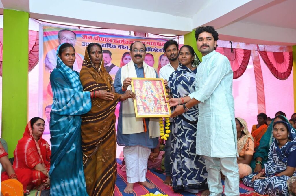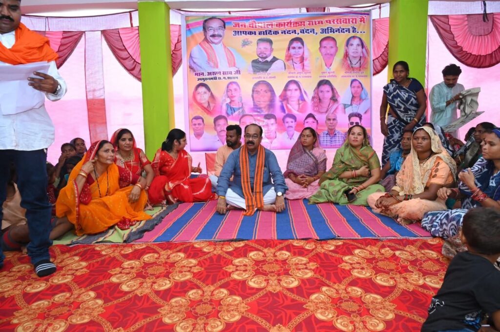 इस दौरान ग्रामीणों ने अपनी समस्या से अवगत कराये श्री साव के द्वारा संबंधित अधिकारी को निर्देशित कर तत्काल निराकरण किये जाने के निर्देश दिये। जनचैपाल को संबोधित करते हुए उपमुख्यमंत्री व विधायक अरूण साव ने माता का आराध्य पर्व नवरात्रि की बधाई व शुभकामाए देते हुए कहा कि लोरमी क्षेत्र के लोग मेरे परिवार का लोरमी क्षेत्र के विकास के लिए मैं हमेशा अग्रसर रहॅूगा। आपके आर्शीवाद से मै विधायक बना हुॅ, भाजपा की सरकार किसानों, महिलाओं, युवाओं की सरकार है, भारत के प्रधानमंत्री नरेन्द्र मोदी व प्रदेश की विष्णु देव साय की सरकार जनता के हितैषी की सरकार है। श्री साव ने लोरमी क्षेत्र के विकास के लिए किये गये कार्यो के बारे में बताये। ग्रामीणों की मांग पर ग्राम ढ़ोलगी में गौरा चैरा में शेड निर्माण के लिए 5 लाख रूप्ये, गुनापुर में सांस्कृतिक मंच के लिए 4 लाख रूप्ये, परसवारा में सीसी रोड निर्माण रामकलम के घर से महामाया रोड तक 7 लाख रूप्ये, स्कुल में बाउण्डी निर्माण के लिए 4 लाख रूप्ये, सांस्कृतिक मंच निर्माण के लिए 3 लाख रूप्ये, लपटी, नवाडीह पंचायत के लिए प्राथमिक शाला लपटी में आहता निर्माण के लिए 10 लाख रूप्ये, सामुदायिक भवन निर्माण के लिए 10 लाख रूप्ये, आदिवासी समाज के लिए गौरी गौरा पुजा हेतु मंच निर्माण के लिए 5 लाख रूप्ये, ग्राम रहंगी में रामायण मंच शेड निर्माण के लिए 7 लाख रूप्ये, लाखासार में दो जगह सीसीरोड निर्माण के लिए 5-5 लाख रूप्ये, भारतपुर में गणेश मंच निर्माण के लिए 3 लाख रूप्ये, नवधा मंच के लिए 5 लाख रूप्ये, चेचानडीह में सामुदायिक भवन निर्माण के लिए 7 लाख रूप्ये, मोहबंधा में सीसी रोड निर्माण के लिए 7 लाख रूप्ये की धोषणा किये है।
