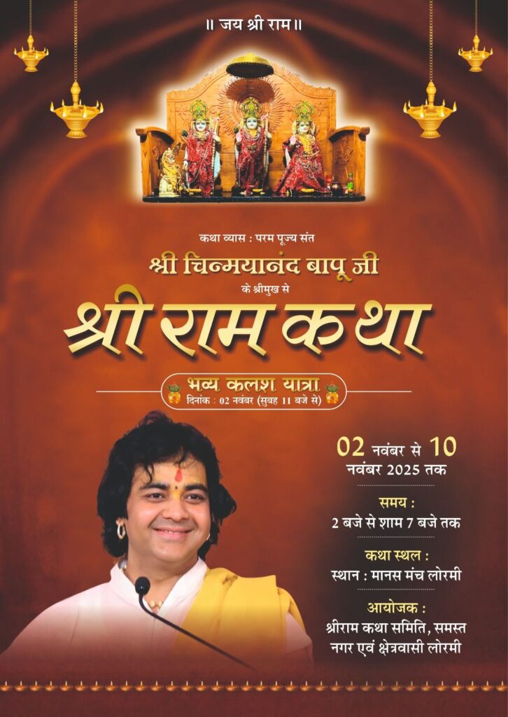 2 नवम्बर से श्रीराम कथा का होगा शुभारंभ चिन्मयानंद बापू के श्रीमुख से होगी कथा