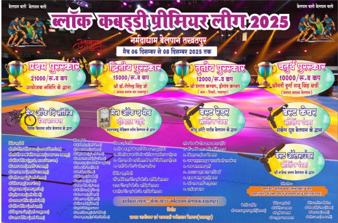 धर्मनगरी बेलपान में ब्लॉक स्तरीय कबड्डी प्रीमियर लीग 2025 का भव्य अयोजन