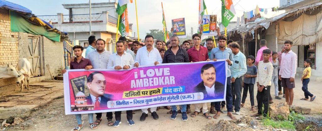 मुंगेली। पिछले कुछ वर्षों से समाज के दलित वर्ग के खिलाफ हिंसा की घटनाओं में लगातार वृद्धि हो रही है, यहां तक कि भारत के मुख्य न्यायाधीश पर भी हमला किया गया है। इसी पृष्ठभूमि में भारतीय युवा कांग्रेस ने दलितों पर हो रहे अत्याचारों के खिलाफ एक सशक्त संदेश देने हेतु “I LOVE AMBEDKAR” शीर्षक से देशव्यापी मार्च आयोजित करने का निर्णय लिया है। यह अभियान आईवाईसी प्रभारी श्री कृष्णा अल्लावरु और भारतीय युवा कांग्रेस के राष्ट्रीय अध्यक्ष श्री उदय भानु चिब , एवं प्रदेश प्रभारी अमित सिंह पठानीया , सह प्रभारी मोनिका मांडरे जी , जिला प्रभारी नजरुल इस्लाम जी के निर्देशन में चलाया जा रहा है।