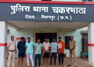 चकरभाठा पुलिस द्वारा ट्रांसपोर्ट नगर शराब दुकान के सामने रोड पर शराब पीकर हुड़दंग करने वाले 06 बदमाशों के खिलाफ प्रतिबंधक कार्यवाही कर भेजा गया जेल