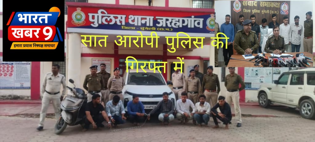 मुंगेली/जरहागांव – ग्राम बरेला पंजाब नेशनल बैंक परिसर मे घटना दिनांक 26.12.2025 को दोपहर करीबन 2.30- 3.00 बजे मृतक राजकुमार धुरी पिता बेनीराम धुरी उम्र 21 वर्ष निवासी बरेला थाना जरहागांव को पुरानी रंजिश जमीन विवाद की बात को लेकर आरोपीगण छोटू साहू, रवि, चिन्टू साहू, पिन्टू साहू, कान्हा पटेल, बफरीन ऊर्फ समीर व उनके अन्य साथियों के द्वारा एक राय होकर आपराधिक षडयंत्र रचकर हत्या करने की नियत से अपहरण कर कही अन्यत्र ले जाकर मृतक के साथ मारपीट कर आयी चोंट के कारण मृत्यु होना पाये जाने से बिना नंबर मर्ग थाना तखतपुर जिला बिलासपुर के जीरो मर्ग पर से थाना जरहागांव मे मर्ग क्रमांक 56/2025 धारा 194 बीएनएसएस के तहत कायम कर जांच पर आरोपीगण के विरूद्ध धारा 140(1), 103(2), 61(1)(ठ) बीएनएस का अपराध पंजीबद्ध कर विवेचना मे लिया गया।