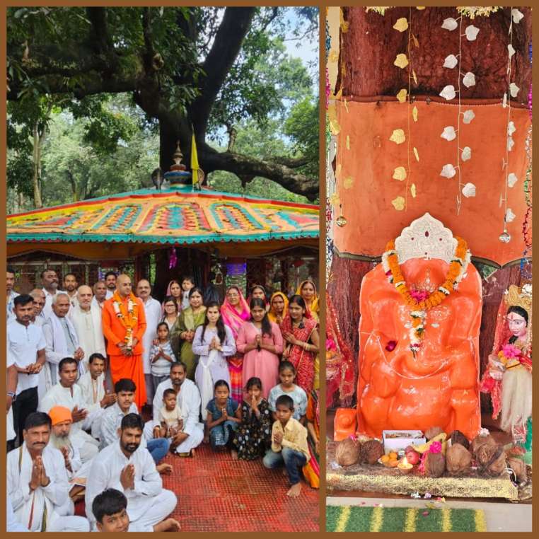 गणेशपुरी कारिआम आश्रम में स्वयंभू स्वरूप में आम वृक्ष के नीचे भगवान विघ्नहर्ता गणेश जी विराजमान है,:: स्वामी शिवानंद महाराज
