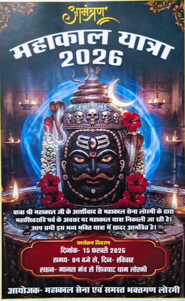 लोरमी – लोरमी नगर में पिछले वर्ष की भांति इस वर्ष भी महाशिवरात्रि के पावन अवसर पर महाकाल यात्रा का आयोजन लोरमी महाकाल सेना के द्वारा आकर्षक झांकी के साथ महाकाल यात्रा निकाला जाएगा।