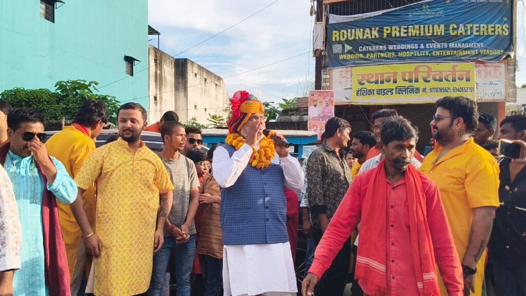 लोगो में मोदी के हमशक्ल के साथ सेल्फी लेने लोग काफ़ी उत्सुक दिखे..थाना ग्राउंड की मातारानी माँ जगजननी की भव्य सुंदर नयनाभिराम जीवंत प्रतिमा को देखने लोरमी ही नहीं बल्कि आसपास के गाँव से भी लोगो की भारी भीड़ उमड़ी.. विसर्जन के दौरान जगह जगह लोगो नें मातारानी को पुष्पवर्षा कर नारियल भेंट कर विदाई दीं और आशीर्वाद लिया इस दौरान लोगो की आँखे भी मैय्या के विदाई से नम थी क्योंकि सभी नें पूरे नौ दिन मईया की पूरे भक्ति भाव से पूजा अर्चना किये इस बार भी थाना ग्राउंड में 3 दिन का गरबा महोत्सव हुआ साथ ही साथ पूरे नौ दिन भजन कीर्तन जगराता भंडारे सहित विभिन्न धार्मिक आयोजन हुआ जिसमें डिप्टी सीएम अरुण साव कलेक्टर कुंदन कुमार एसपी भोजराम पटेल जिला पंचायत सीईओ प्रभाकर पांडे जनपद अध्यक्ष वर्षा सिँह नगरपालिका अध्यक्ष सुजीत वर्मा सहित बड़ी संख्या में जनप्रतिनिधि शामिल हुए.. इस बार आगमन से लेकर विसर्जन तक में बारिश नें जरूर खलल डाली लेकिन माता की कृपा और आयोजन समिति के मेहनत से सभी कार्यक्रम अच्छे से हुए जिसमें आयोजन समिति के प्रशांत शर्मा, आकाश केशरवानी, विश्वास दुबे, नरेंद्र खत्री अमित दुबे, गेंदेश डडसेना फोंटी सापरिया, अमन सलूजा, मनीष सोनी, आवेश द्विवेदी, अमित मिश्रा, गुड्डू गुप्ता, श्यामू कश्यप, सोनू सापरिया, कृष्णा शर्मा, शुभम सलूजा, विशाल अग्रवाल, तुषार अग्रवाल, स्मारक श्रीवास्तव, समीर पाठक, रितेश सलूजा, पुनीत शर्मा, नागेश गुप्ता, मोनू यादव, भूपेंद्र वैष्णव दीपक प्रजापति, कान्हा शर्मा पार्थ शर्मा, नैतिक वंश आदि सभी सदस्यों ने तन मन धन से सहयोग में जुटे रहे।
