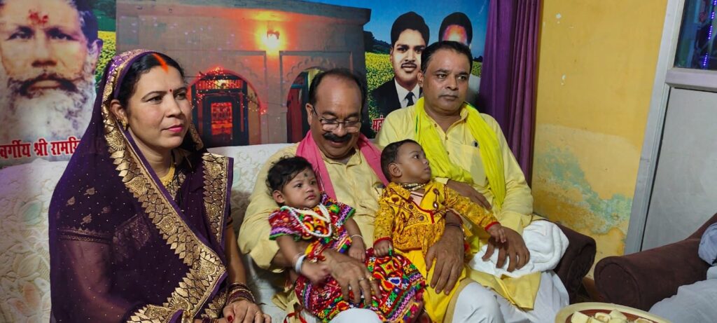श्री कृष्ण जन्मोत्सव के अवसर पर पुरा क्षेत्र भक्तिमय भाव में डुबे रहे श्री कृष्ण जन्मोत्सव को लेकर सुबह से तैयारी किया गया, श्री कृष्ण जन्मोत्सव के अवसर पर नगर के रामजानकी मंदिर में महंत सीमांत जाॅनी दास के सानिद्धय में भगवान श्री कृष्ण राधा की विशेष पुजा अर्चना किया गया इस अवसर पर डिप्टी सीएम अरूण साव मंदिर पहुॅचकर श्री कृष्ण राधारानी एवं श्री रामजानकी की पुजा अर्चना कर क्षेत्र की सुख समृद्धि खुशहाली की कामना किये, इस अवसर पर मंदिर में हरि भजन कीर्तन का भी अयोजन किया गया व रात्रि में 12 बजे श्रीकृष्ण जन्मोत्सव के दौरान जमकर आतिशबाजी किया गया। लोरमी नगर के श्री राधाकृष्ण मंदिर, ठाकुर देव मंदिर, कंकालिन मंदिर में भी भगवान श्रीकृष्ण व राधारानी की विशेष पुजा अर्चना करते विशेष पकवान, मिष्ठान, मक्खन, दही, पंजरी का भोग लगाकर प्रसाद वितरण किया गया, श्रीकृष्ण के भक्तिमय में पुरा नगर रात्रि भर डुबे रहे। श्री कृष्ण जन्मोत्सव को लेकर नगर के कई स्थानो पर टोलियों के द्वारा मटकी बांधकर श्री कृष्ण के भक्तिमय गीतो के साथ झुमते हुए मटका फोड़े। श्री कृष्ण जन्मोत्सव के दौरान विश्वजीत सिंह, चंद्रप्रभा वैष्णव, जनपद अध्यक्ष वर्षा विक्रम सिंह, गुरमीत सलुजा, विनय साहू, नपा अध्यक्ष सुजीत वर्मा, नपा उपाध्यक्ष अशोक जायसवाल, प्रदीप मिश्रा, अनिल सलुजा, सुशील यादव, राकेश छाबड़ा, राजेन्द्र साहू, शैलेन्द्र सलुजा, रवि शर्मा, महेन्द्र खत्री, घंशु राजपुत, सुरेश शर्मा,निरंजन अग्रवाल, अविष यादव, नीतेश अग्रवाल, सोहन डड़सेना, आलोक शिवहरे, विश्वास दुबे, शशांक वैष्णव, घनश्याम यादव, छेदराम यादव, नरेन्द्र खत्री, सुरेश श्रीवास, विकास केशरवानी, हितेश सापरिया, दुष्यंत खत्री, समीर पाठक, अकाश वैष्णव हिमांशु यादव, मोनु यादव, अंकित यादव, आशुतोष केशरवानी, अंश पाठक, पप्पु चंदेल, आयुष पाठक, लता देवी, मंटी जायसवाल, श्रद्धा पाठक, डेजी छाबड़ा, सविता पाठक, उषा यादव, रामंचद्र कश्यप, सुनीता कश्यप, रेखा कश्यप, तारा कश्यप, स्नेहलता श्रीवास, प्रीति श्रीवास, समृद्धि पाठक, गार्गी पाठक, पुष्पा यादव, लक्ष्मी यादव, आदि ने पुजा अर्चना में शामिल हुये।