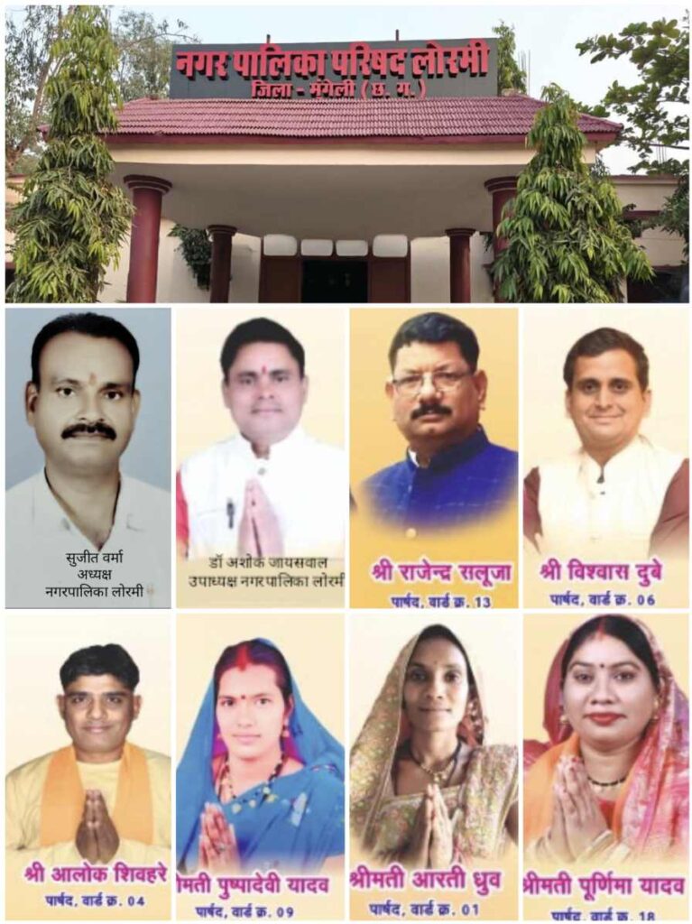 लोरमी – नगर पालिका परिषद में नगर के विकास को लेकर अध्यक्ष सुजीत वर्मा के आदेशानुसार लोरमी नगर पालिका के सभापति (प्रेसीडेण्ट-इन-काउंसिल) का गठन कर जिम्मेदारी सौपी गयी।
