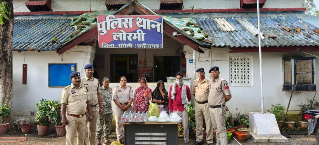 लोरमी – पुलिस अधीक्षक मुंगेली भोजराम पटेल के कुशल निर्देशन में तथा अतिरिक्त पुलिस अधीक्षक नवनीत कौर छाबडा के मार्ग दर्शन एवं उप पुलिस अधीक्षक महोदय नवनीत पाटील के निर्देशन पर अवैध शराब जुआ सट्टा व असामाजिक तत्वों के खिलाफ कार्यवाही करने प्राप्त निर्देश के तारतम्य में थाना लोरमी मेँ जरिये मुखबीर सूचना मिला कि ग्राम पैजनिया में अधिक मात्रा में शराब लाकर गांव में बेचा जा रहा है कि सूचना पर अलग अलग पुलिस टीम बनाकर ग्राम पैजनिया रवाना किया गया टीम द्वारा मुखबीर के बताये स्थानों पर घेराबंदी कर दबीश दिया गया जहाँ 03 व्यक्तियों को पकडा गया जिनका नाम पता पुछने पर संजय कश्यप पिता श्रवण उम्र 35 साल, मालती कश्यप पति दशरथ उम्र 38 साल, मानकी उर्फ भूरी कश्यप पति रामकुमार उम्र 50 साल साकिनान पैजनिया थाना लोरमी का होना बताये जिनके कब्जे से कुल 30 नग देशी प्लेन शराब व 12 लीटर महुआ शराब रखे पाये जाने से शराब रखने के संबंध में वैद्य दस्तावेज पेश करने कहा गया किंतु उनके द्वारा वैद्य दस्तावेज पेश नहीं किया गया जिसे समक्ष गवाहन जप्त किया गया थाना लोरमी में अपराध क्रमांक 504, 505, 506/25 धारा 34(2)59 (क) आबकारी एक्ट के तहत विधिवत कार्यवाही करते गिरफ्तार कर न्यायालय आरोपियों को पेश किया गया न्यायिक रिमांड मिलने पर आरोपियों क़ो जेल दाखिल किया गया। उक्त कार्यवाही में थाना प्रभारी के साथ पुलिस स्टाफ के रामकुमारी यादव, निर्मल घोष, शेषनारायण कश्यप, जयप्रकाश दुबे, ईश्वर मरावी, युगल किशोर उपाध्याय, पुरुषोत्तम ध्रुव, अनिल कश्यप, कुलदीप राजपूत की सराहनीय भूमिका रही।