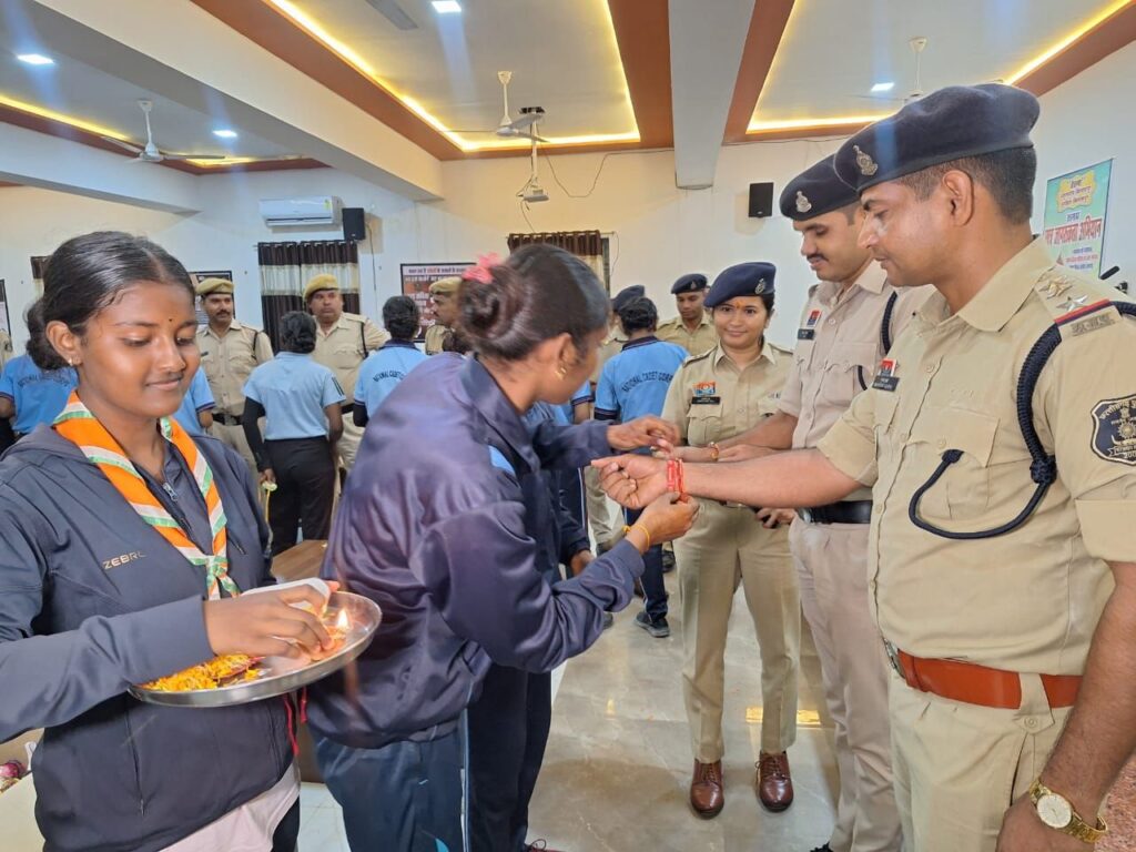 इसी क्रम में आज पुलिस लाइन में पुलिस अधिकारी कर्मचारियों को स्कूली छात्राओं द्वारा रखी बांधी गई और हमेशा सुरक्षा/ रक्षा करने का वादा लिये और स्कूल के बच्चों को महिला पुलिस अधिकारी कर्मचारी द्वारा रक्षा सूत्र बाँधकर रक्षा करने का संकल्प लिए, बच्चियों द्वारा अतिरिक्त पुलिस अधीक्षक श्रीमती अर्चना झा, डीएसपी श्रीमती मंजुलता केरकेट्टा, डीएसपी श्रीमती भारती मरकाम , रक्षित निरीक्षक भूपेंद्र गुप्ता और महिला पुलिस को भी रक्षा सूत्र बांधे और हमेशा रक्षा काटने का वादा लिए ।इस अवसर पर लगभग 200 से अधिक पुलिस अधिकारी कर्मचारी को राखी बाँधी गई ।