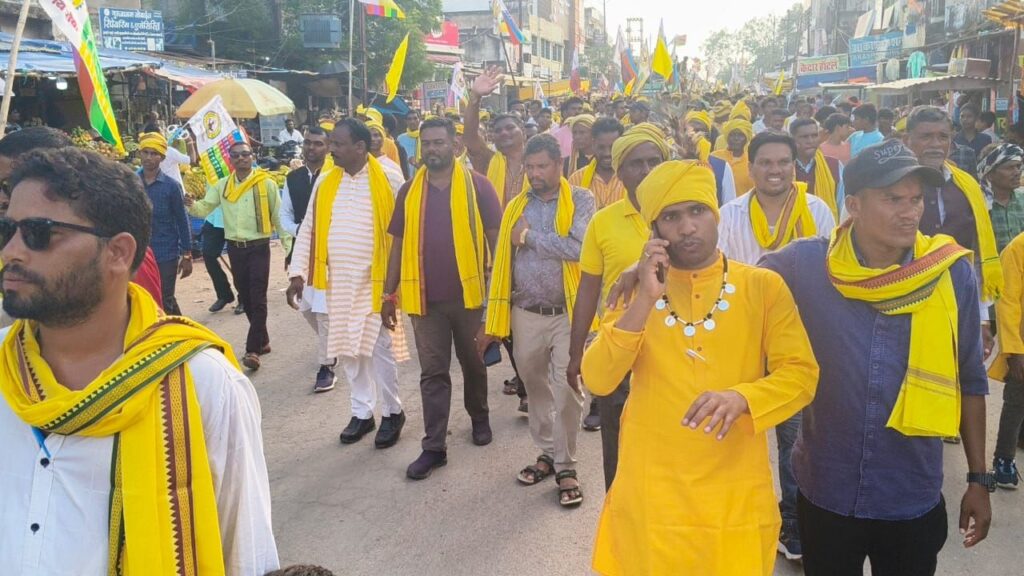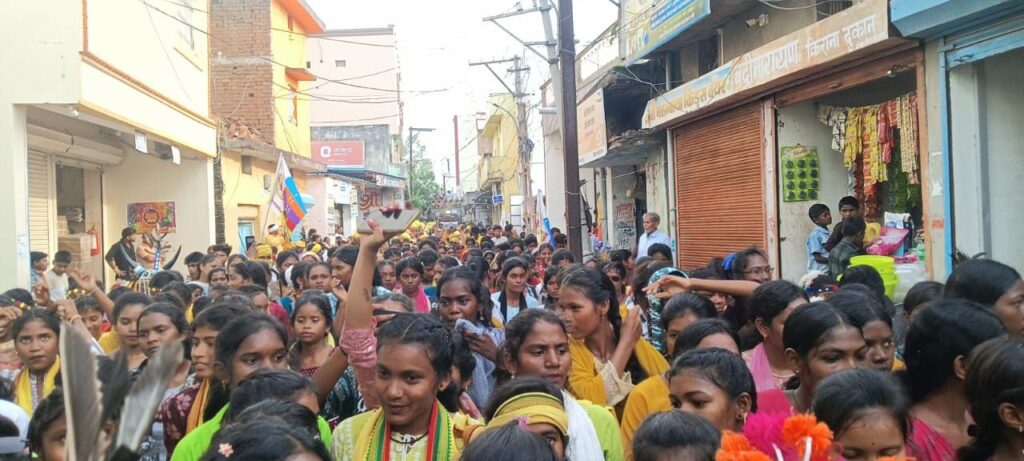 विश्व आदिवासी दिवस पर निकली रैली डीजे धुमाल के साथ भोजली विसर्जन