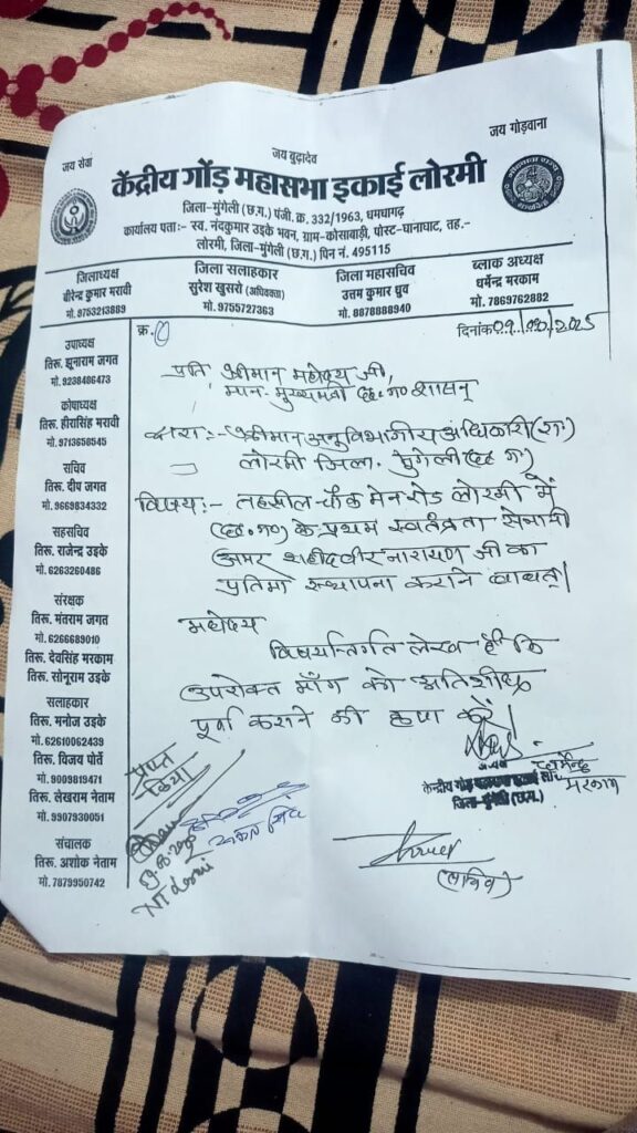 50 बिस्तर अस्पताल को रानी दुर्गावती और तहसील चौक का नामकरण वीर नारायण सिंह के नाम पर करने की मांग