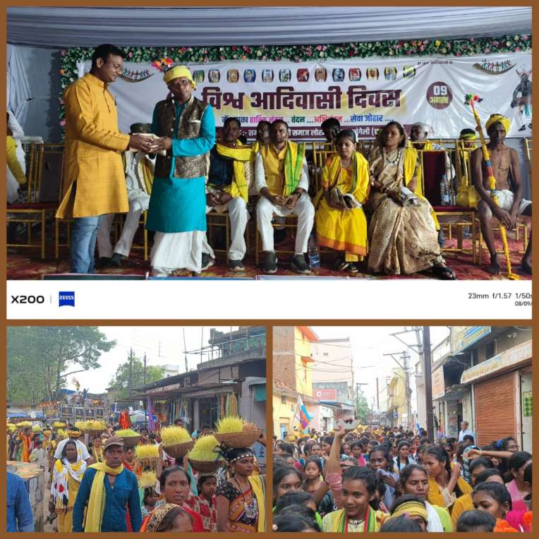 लोरमी- 2 दिवसीय कार्यक्रम आदिवासी समाज ने रखा जिसमे आदिवासी समाज के द्वारा विश्व आदिवासी दिवस एवं भोजली महोत्सव धूमधाम से मनाया गया। दो दिवसीय इस आयोजन में हजारों की संख्या में समाज के लोग शामिल हुए। विश्व आदिवासी दिवस के मौके पर तीन अलग-अलग रैली निकाली, पहली रैली ग्राम डोंगरीगढ़ से दूसरी रैली ग्राम कंचनपुर से और तीसरी रैली ग्राम परसवारा से गाजे बाजे की धुन पर तीनों रैली ग्राम सारधा कृषि उपज मंडी पहुंची, यहां से नगर भ्रमण के लिए रैली की शुरुआत की गई। हजारों की संख्या में पद यात्रा करते हुए मुख्य मार्ग में रैली निकाली गई। रेस्ट हाउस से लौटकर तहसील चौक में आदिवासी समाज द्वारा मुख्यमंत्री और राज्यपाल के नाम ज्ञापन सौंपा गया। ज्ञापन के माध्यम से मांग किया गया कि तहसील चौक लोरमी में छत्तीसगढ़ के प्रथम स्वतंत्रता सेनानी अमर शहीद वीर नारायण सिंह की प्रतिमा स्थापित किया जाए, 50 बिस्तर अस्पताल को 100 बिस्तर करते हुए उक्त अस्पताल का नामकरण रानी दुर्गावती के नाम पर करने, लोरमी के प्री मैट्रिक आदिवासी बालक बालिका छात्रावास को पोस्ट मैट्रिक करने,वनांचल क्षेत्र में संचालित सभी उप स्वास्थ्य केदो में एमबीबीएस डॉक्टर की पद स्थापना करने, वनांचल क्षेत्र के स्कूलों में शिक्षकों की भर्ती करने, एटीआर के कोर एवं बफर जोन में आवागमन सुविधा हेतु पुल पुलिया एवं डब्लूबीएम रोड की स्वीकृत करने, वनभूमि कब्जाधारियों को वन अधिकार पत्र दिलाने तथा बफर क्षेत्र में बिजली सुविधा की मांग प्रमुखता से की गई है, यहां से रैली मंडी प्रांगण पहुंची जहां मंचीय कार्यक्रम हुआ।