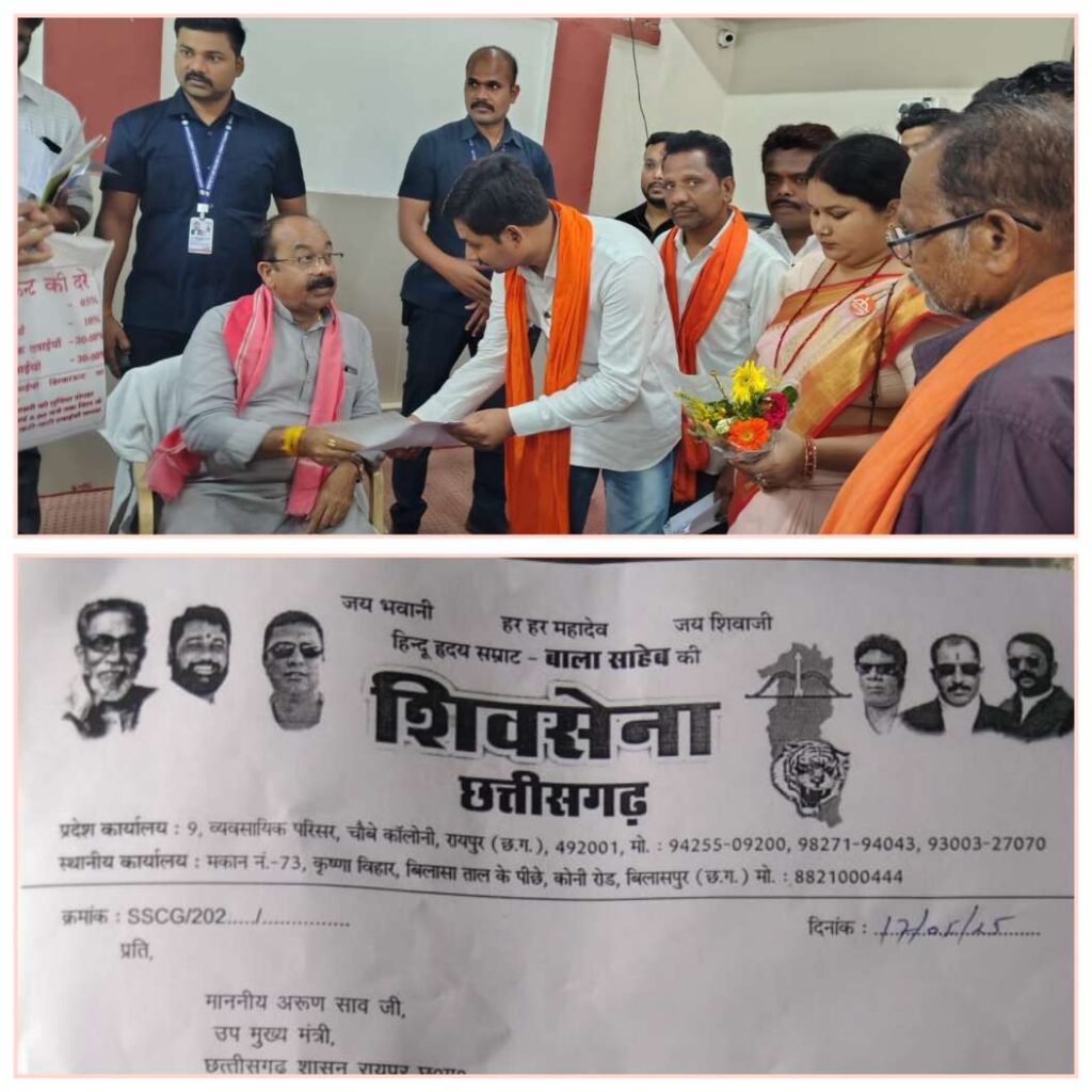 शिवसेना बिलासपुर ने उपमुख्यमंत्री साव से विभिन्न मुद्दों पर ज्ञापन सौपकर मांग किया