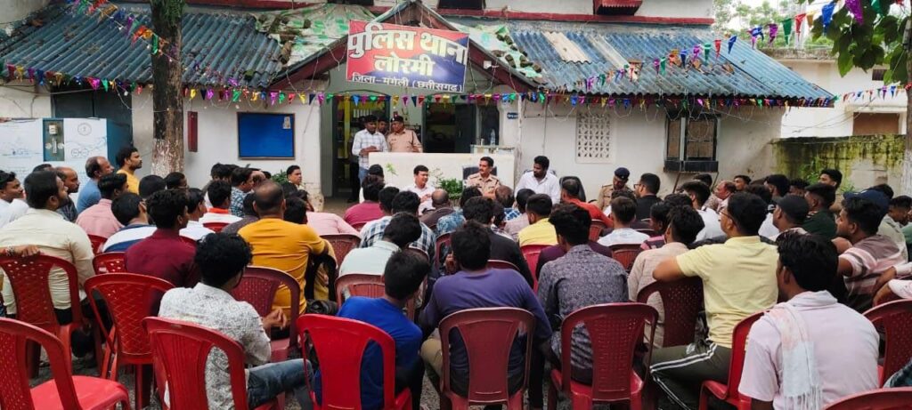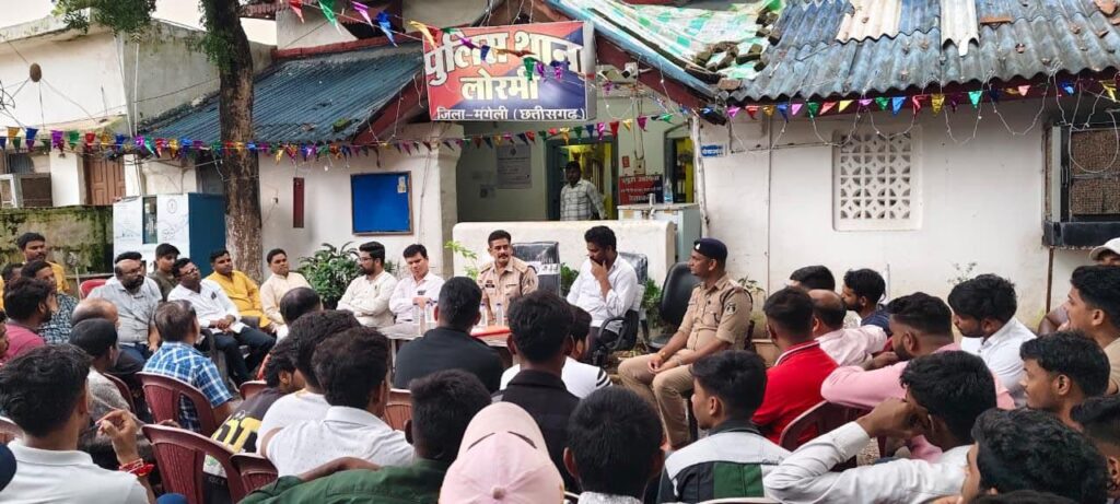 लोरमी – नगर में गणेश उत्सव को लेकर थाना परिसर में शांति समिति के बैठक लिया गया जिसमें प्रशासनिक, जनप्रतिनिधि, थाना स्टाफ सहित गणेश समिति के सदस्य डीजे संचालक बैठक में उपस्थित रहे, पर्व को शांति पूर्व धुमधाम से मनाने को लेकर दिशा निर्देश दिया गया। वही समितियों के उत्साह वर्धन के लिए जनप्रतिनिधियो, व्यापारीयो के द्वारा ईनाम की धोषणा किया जाना चाहिए।