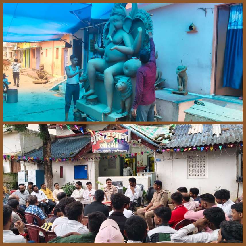 नगर में प्रतिवर्ष की भांति इस वर्ष भी प्रथम पुज्य गजानंद स्वामी का ग्यारह दिवसीय आराध्य पर्व 27 अगस्त से 6 सितंबर तक धुमधाम से मनाने के लिए नगरवासी सहित समिति के सदस्यों के द्वारा तैयारीयाॅ प्रारंभ कर दिया गया, शांति पूर्वक पर्व मनाये जाने को लेकर नगर के थाना परिसर में तहसीलदार शेखर पटेल, नायब तहसीलदार शान्तनु तारम, एसडीओपी नवनीत पाटिल, सीएमओ चंदन शर्मा, लोरमी थाना प्रभारी अखिलेश वैष्णव के द्वारा थाना परिसर में बैठक आहुत किया गया जिसमें जनप्रतिनिधी, नगरवासी, समिति के सदस्य व डीजे संचालक मौजुद रहे,
