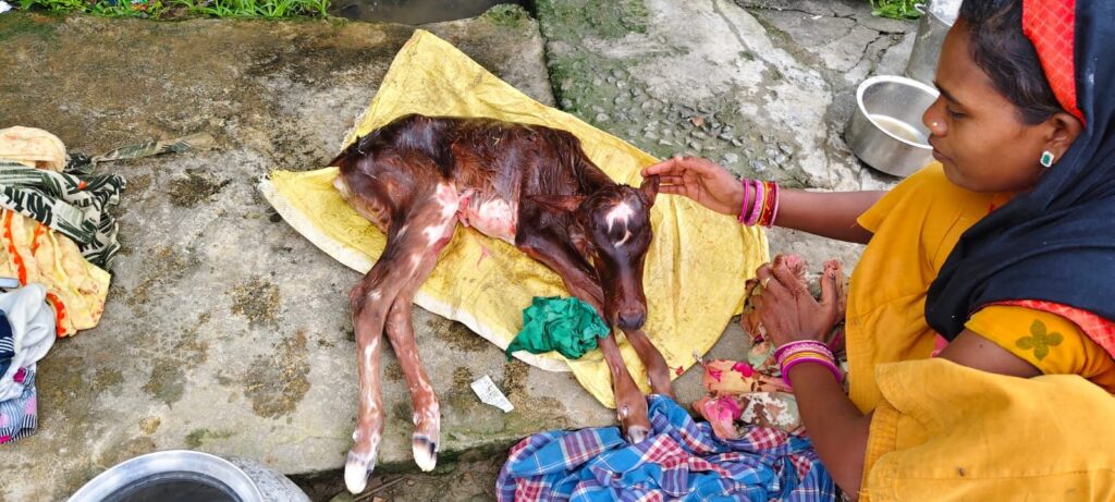 चूंकि गाय प्रेगनेंट थी प्रसव का समय नजदीक आने पर गाय का प्रसव नहीं हो पा रहा था मालिक द्वारा पशु चिकित्सालय संपर्क करने पर चेक किया गया एवं पता चला कि कूल्हे के हड्डी के चोटिल होने के कारण सामान्य प्रसव संभव नहीं है अतः आपरेशन की सहमति मालिक द्वारा दिए जाने उपरांत सिजेरियन आपरेशन किया गया एवं नवजात बछिया को सफलतापूर्वक ऑपरेशन द्वारा निकाला गया