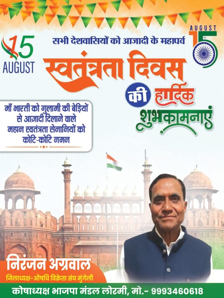लोरमी में आजादी का 79 वा स्वतंत्रता दिवस बड़े ही हर्षोल्लास के साथ मनाया गया जिला औषधि विक्रेता संघ के सदस्यों के द्वारा