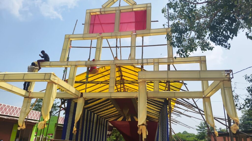 नगर में जगह जगह समिति के द्वारा मुताबिक पंडाल तैयार कर मूर्ति स्थापित किया जाएगा