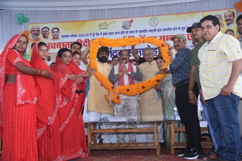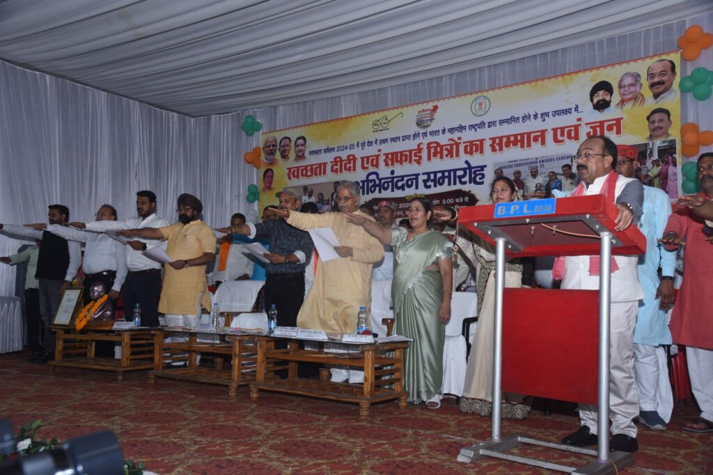 बिल्हा को स्वच्छता में देश भर में प्रथम बनाने में योगदान के लिए उप मुख्यमंत्री ने स्वच्छता दीदियों और सफाई कर्मियों को किया सम्मानित