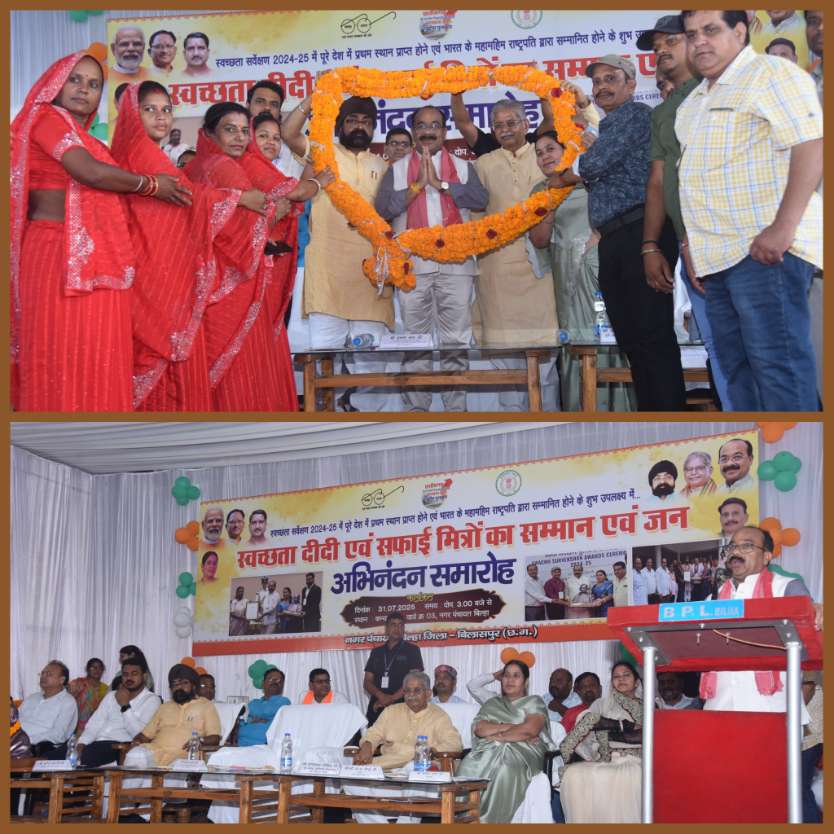बिल्हा को स्वच्छता में देश भर में प्रथम बनाने में योगदान के लिए उप मुख्यमंत्री ने स्वच्छता दीदियों और सफाई कर्मियों को किया सम्मानित