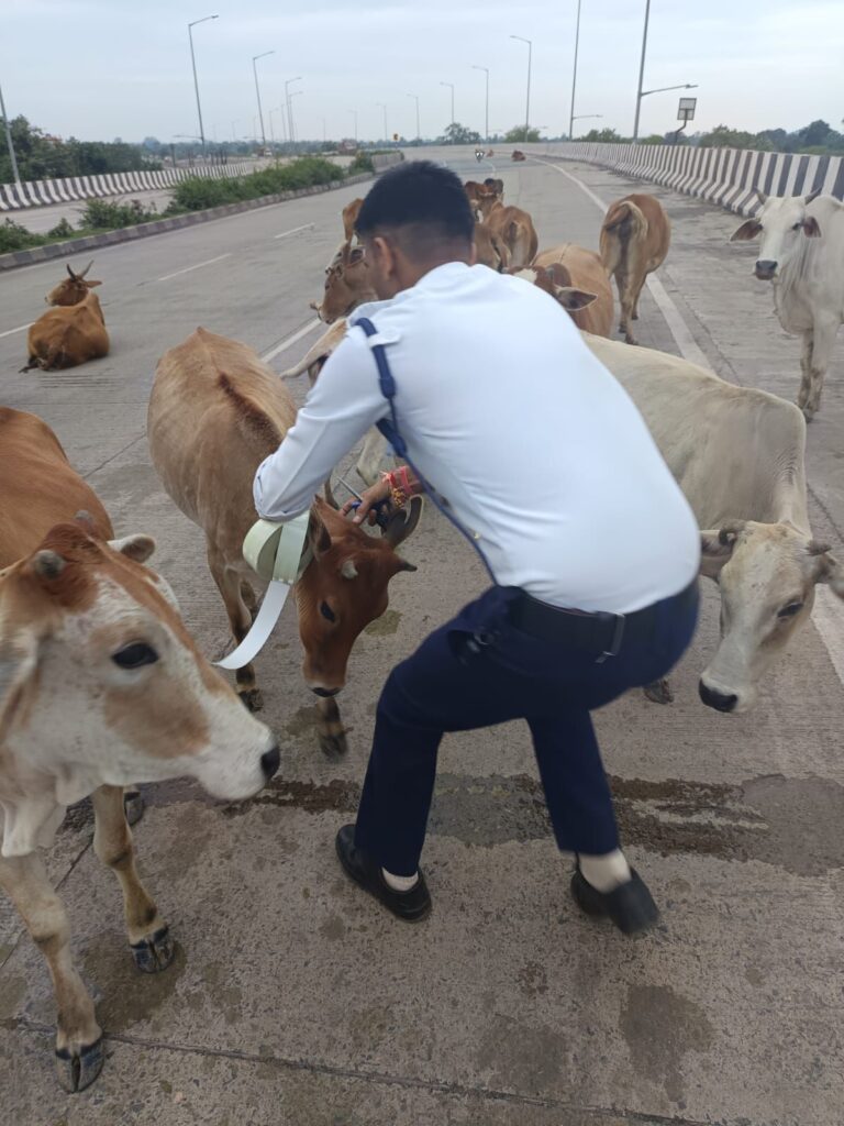 वरिष्ठ पुलिस अधीक्षक रजनेश सिंह के दिशा निर्देश पर नेशनल हाइवे एवं अन्य प्रमुख मार्गों में मवेशियों के कारण होने वाली सड़क दुर्घटनाओं में प्रभावी नियंत्रण एवं रोक लगाने हेतु लगातार विभिन्न विभागों के साथ बैथक लेकर संबंधित विभागों को विभिन्न महत्वपूर्ण निर्देश एवं हिदायत दी गई है एवं किसी भी स्थिति में मवेशियों के कारण सड़क दुर्घटनाओं की स्थिति ना बने इस हेतु आवश्यक प्रयास किए जाने निर्देशित की गई है।