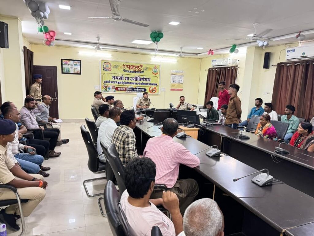 पुलिस अधीक्षक भोजराम पटेल (भा.पु.से.) द्वारा चलाये जा रहे अभियान *‘‘पहल’’* के तहत पुलिस अधीक्षक कार्यालय के संवाद सभाकक्ष मे कम उम्र के बच्चों तथा युवाओं का बेहतर एवं उज्जवल भविष्य का निर्माण करने हेतू व स्वास्थ्य को दृष्टिगत रखते हुये सुखा नशा जैसे ब्राउन शुगर, चरस, अफीम, नाइट्रा का सेवन करने वाले बच्चे, युवाओं को *‘‘तमसोे मा ज्योतिर्गमय’’* कार्यक्रम जिसका अर्थ:- अंधकार को छोड़कर प्रकाश की ओर जाना अर्थात् बुराई (नशा) छोड़कर अच्छाई को ग्रहण करने के उद्देश्य से *‘‘दुर्व्यवसनी आदतों को सुधार हेतू किशोर बालकों, युवाओं एवं अभिभावकों की कार्यशाला’’* आयोजित कर परिजनों के समक्ष युवाओं को नशे से होने वाले दुष्प्रभाव के बारे मे जागरूक किया गया।