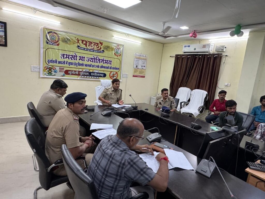 ➡ मुंगेली पुलिस अधीक्षक भोजराम पटेल (भा.पु.से.) के निर्देशन मे अभियान ‘‘पहल’’ के तहत दुर्व्यवसनी बालकों, युवाओं उनके अभिभावक की कार्यशाला ‘‘तमसो मा ज्योतिर्गमय सुत्र के साथ युवाओं को बदलाव की शुरूआत सुरक्षा के साथ’’ किया गया आयोजन।
