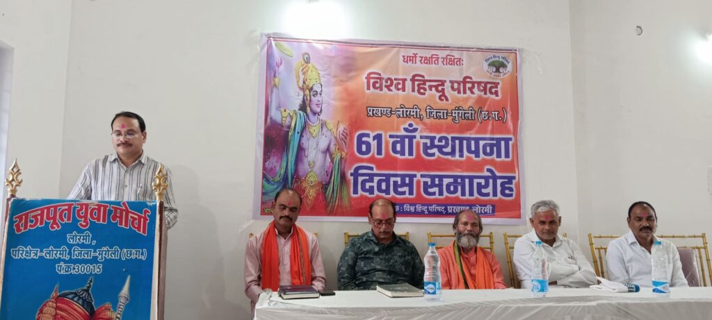 विश्व हिन्दू परिषद का 61वां स्थापना दिवस समारोह राजपूत भवन लोरमी में संपन्न हुई। लोरमी प्रखंड द्वारा आयोजित कार्यक्रम का शुभारंभ राम दरबार के समक्ष पूजा अर्चना कर किया गया।