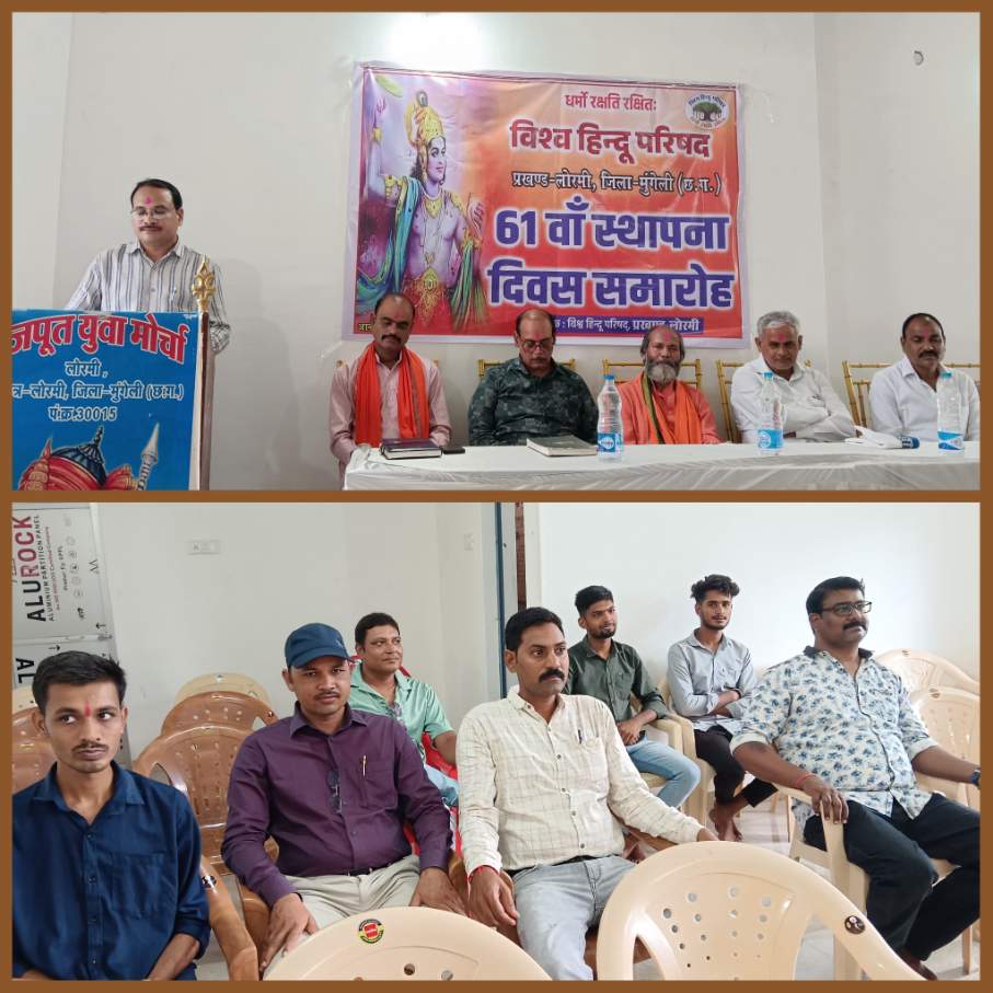 विश्व हिन्दू परिषद का 61वां स्थापना दिवस समारोह राजपूत भवन लोरमी में संपन्न हुई। लोरमी प्रखंड द्वारा आयोजित कार्यक्रम का शुभारंभ राम दरबार के समक्ष पूजा अर्चना कर किया गया।
